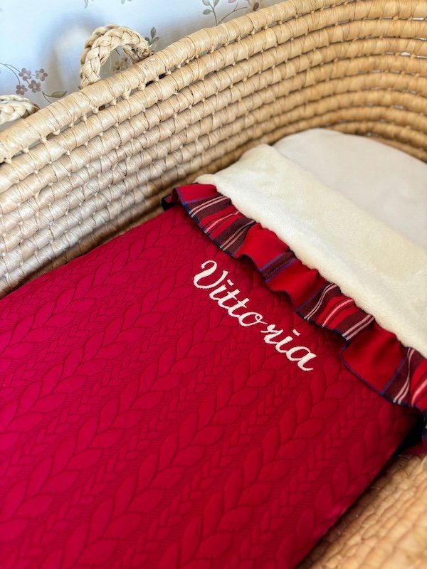 Copertina carrozzina trecce Jersey/ciniglia avorio e volant tartan