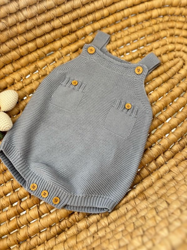 Lasciati conquistare dalla dolcezza e dalla praticità di questa salopette in maglia, pensata per i piccoli esploratori in erba. Il design classico con bretelle a bottoni e taschine frontali dona un tocco vintage irresistibile, mentre la maglia morbida e avvolgente assicura il massimo comfort in ogni stagione.