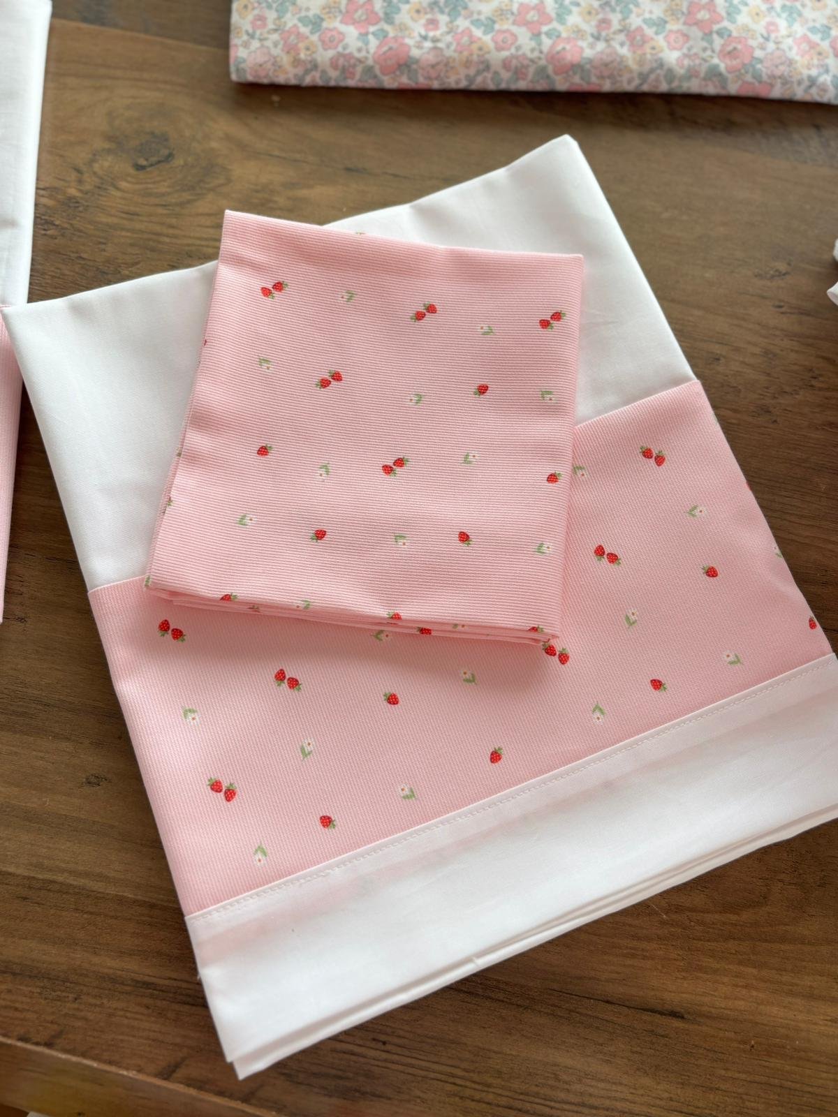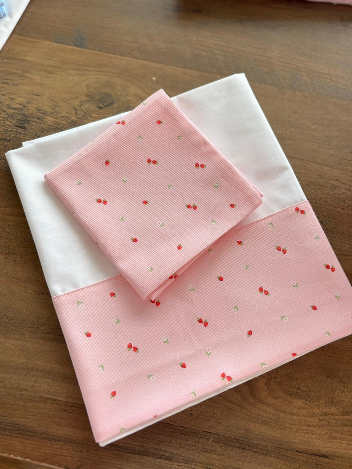 Set lenzuola carrozzina in cotone e Piquet fragoline e ochette